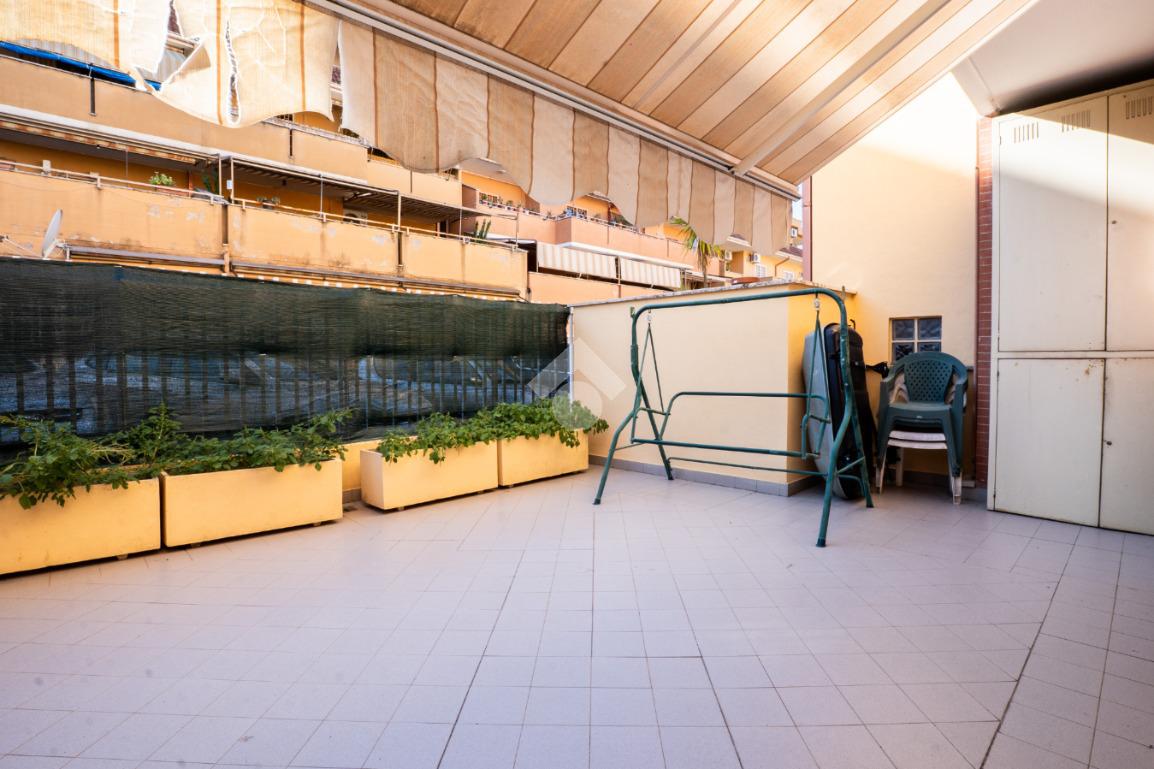 La zona notte ospita una camera matrimoniale con affaccio diretto sul terrazzo, una cameretta con accesso al secondo terrazzo di circa 30 mq e due bagni finestrati, uno con vasca e l’altro con doccia, pensati per garantire la massima praticità.