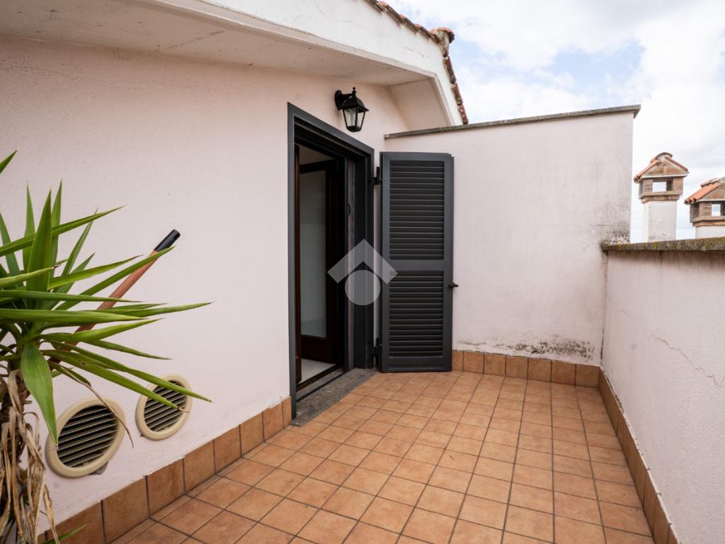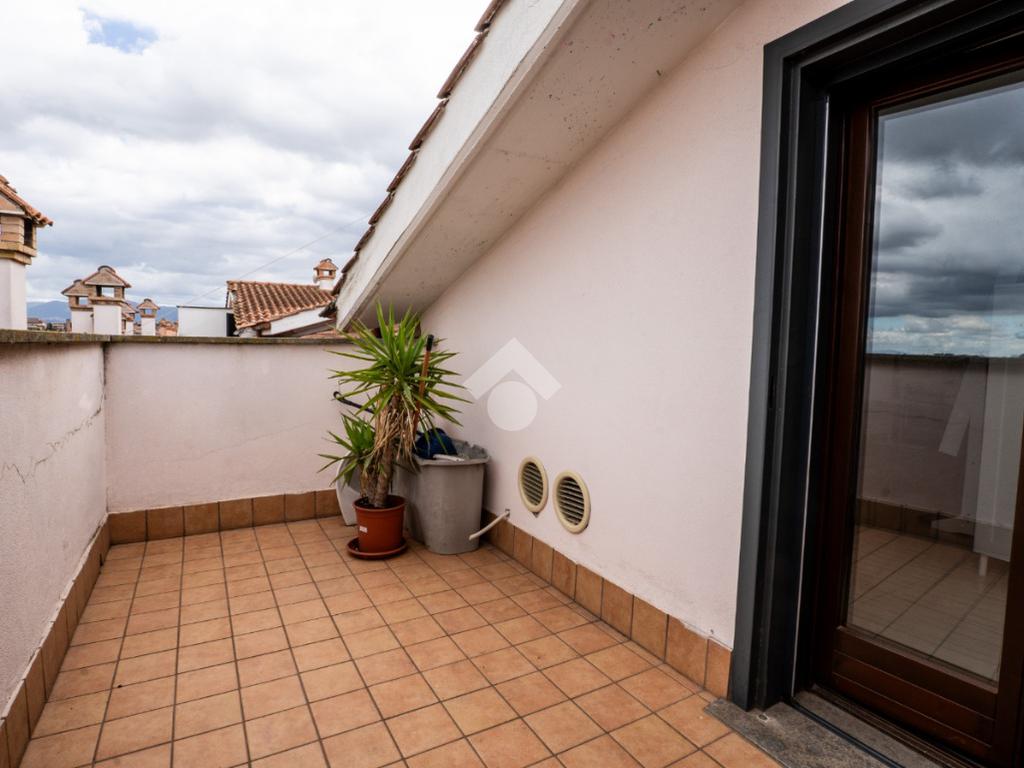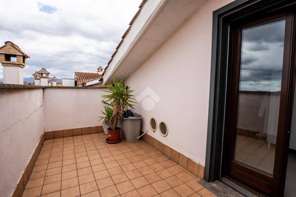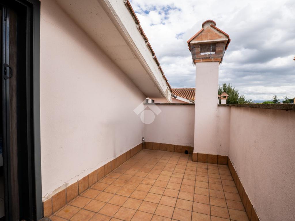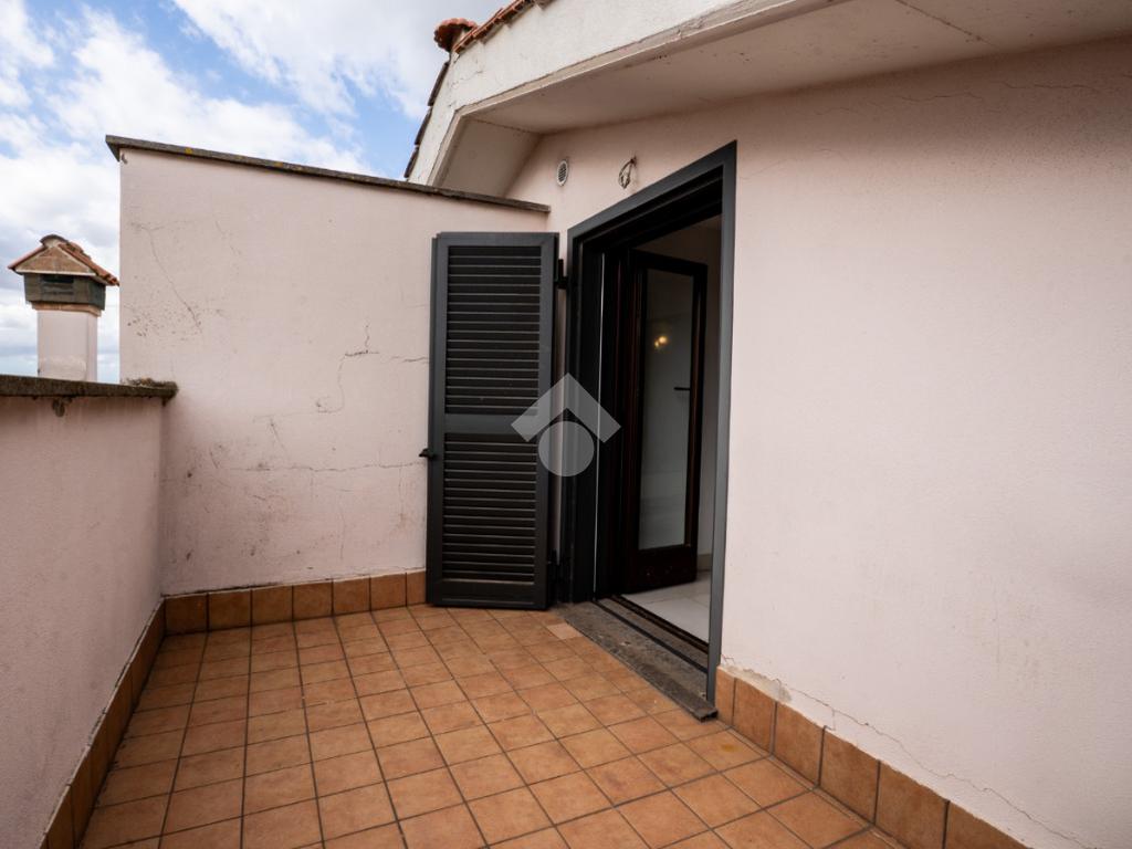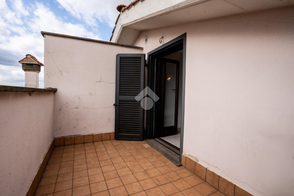 La scala interna conduce al piano superiore, leggermente mansardato, dove si sviluppa una seconda camera, un secondo bagno cieco con doccia e due terrazzini aggiuntivi che regalano luminosità e sfogo esterno anche alla zona notte.