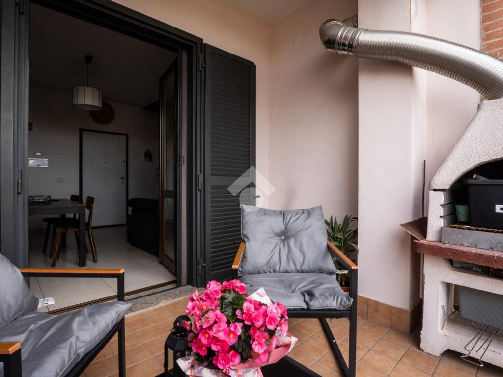 Al secondo piano troviamo un accogliente soggiorno con predisposizione per angolo cottura, una camera da letto, un bagno cieco con vasca e due graziosi terrazzini, di cui uno dotato di barbecue: lo spazio perfetto per pranzi e cene all'aperto.