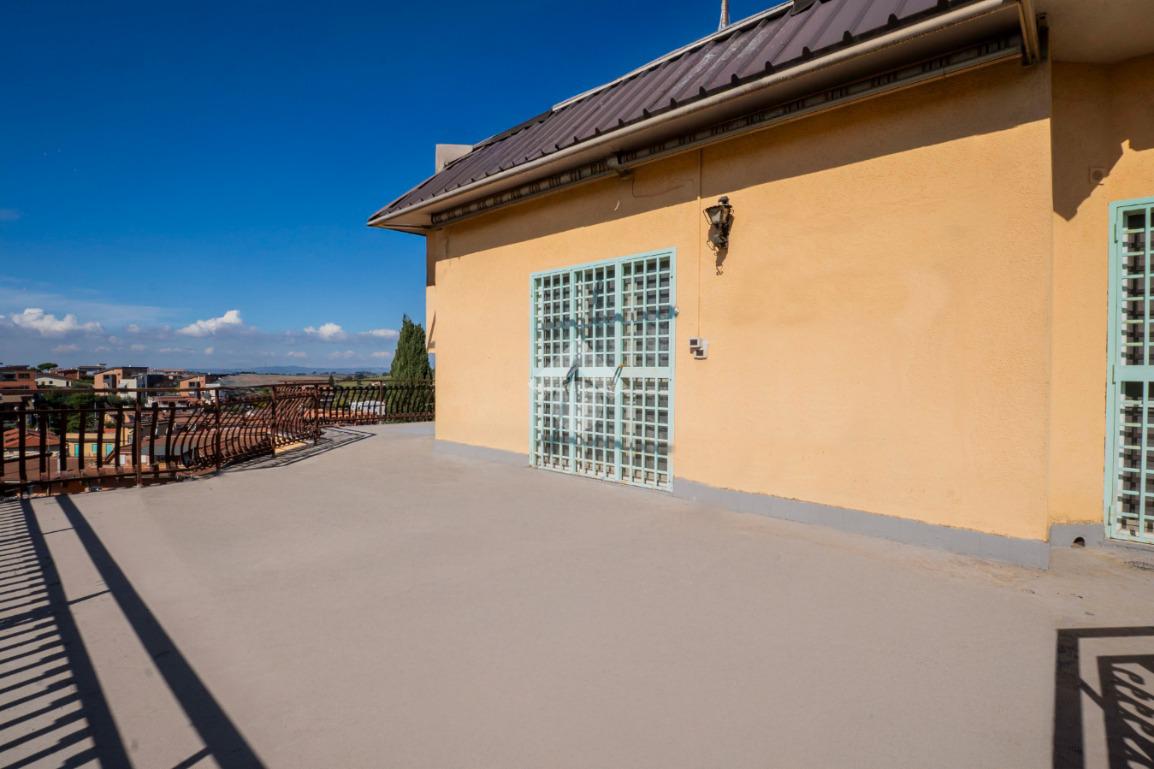 Da tutte le camere si accede al grande terrazzo perimetrale di 100 mq, perfettamente vivibile e attrezzato con zona barbecue. Una scala a chiocciola conduce al terrazzo sovrastante di 100 mq con vista panoramica mozzafiato ed unica nel suo genere; entrambi i lastrici solari sono stati completamente rifatti e coibentati, pronti per essere pavimentati secondo il proprio stile e gusto personale.