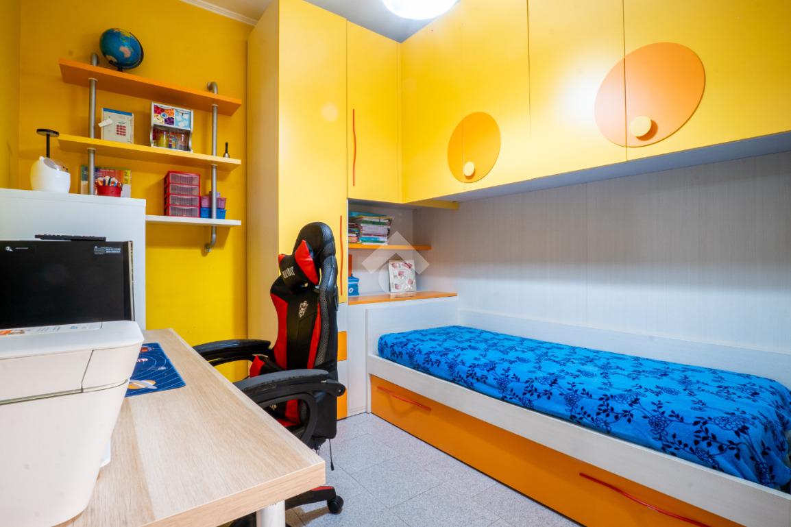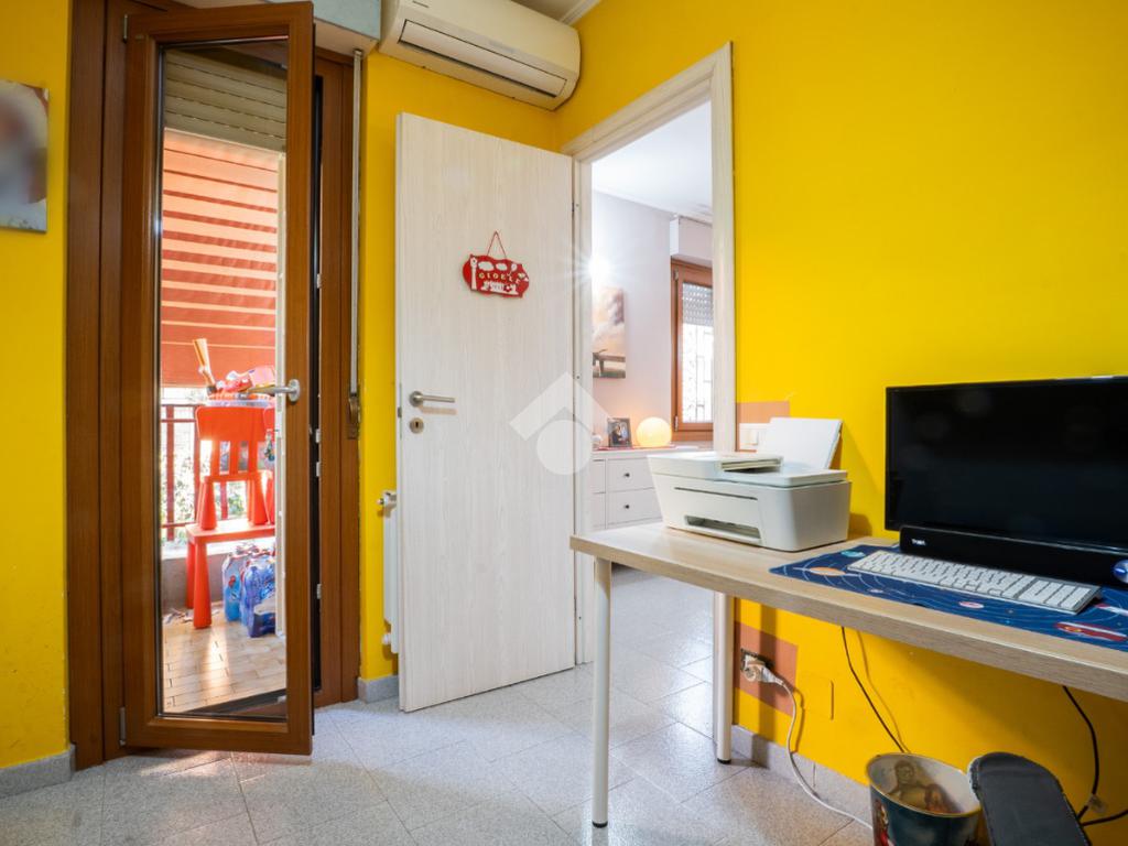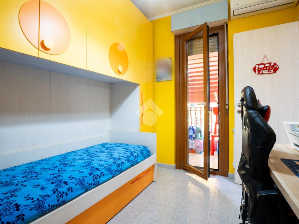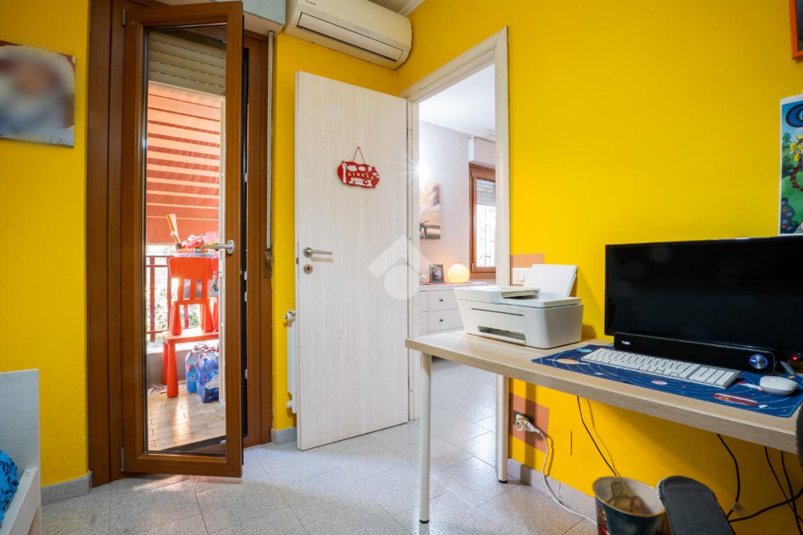 L’ingresso si apre su un soggiorno luminoso, con accesso al balcone condiviso con la cameretta, perfetto per creare una zona giorno ariosa e funzionale.