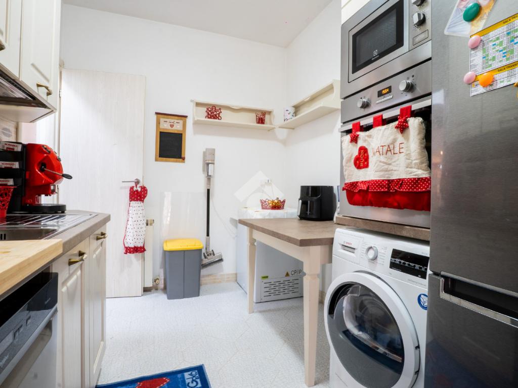 La cucina, abitabile e ben organizzata, affaccia su un secondo balcone ed il bagno finestrato, è dotato di box doccia.