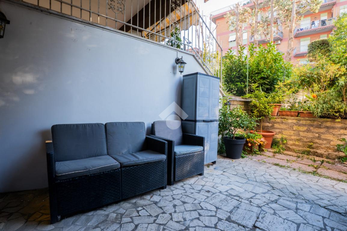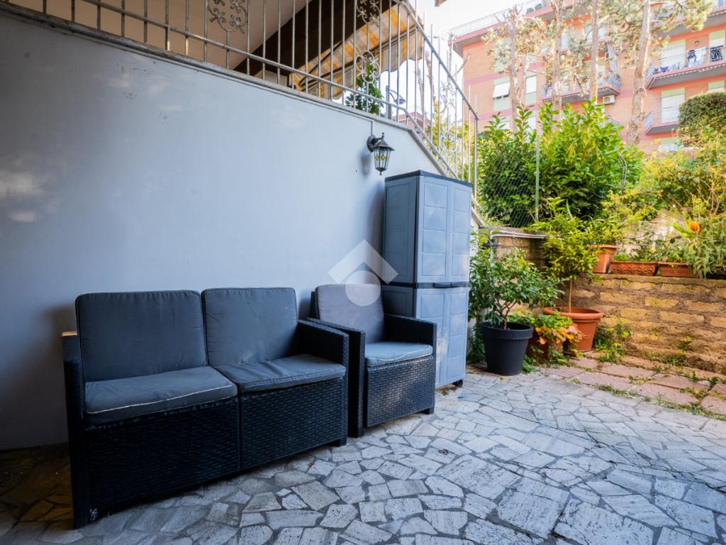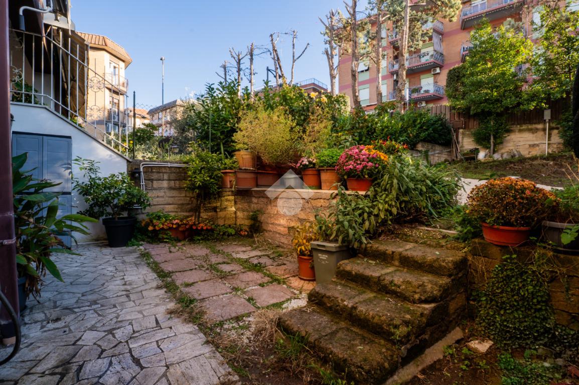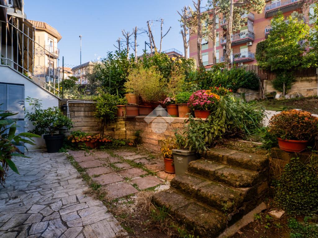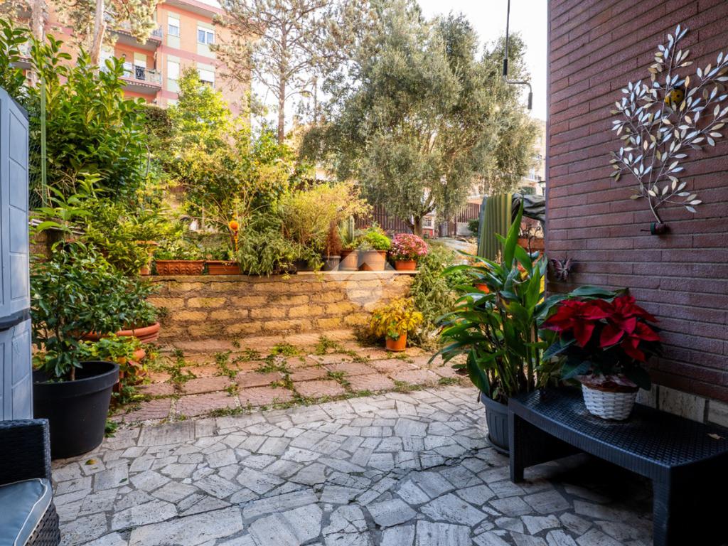 Arricchisce la proprietà un giardino di proprietà esclusiva di 170 mq, perfetto per vivere all’aperto e organizzare cene e momenti di relax, che permette anche di parcheggiare due auto all’interno.