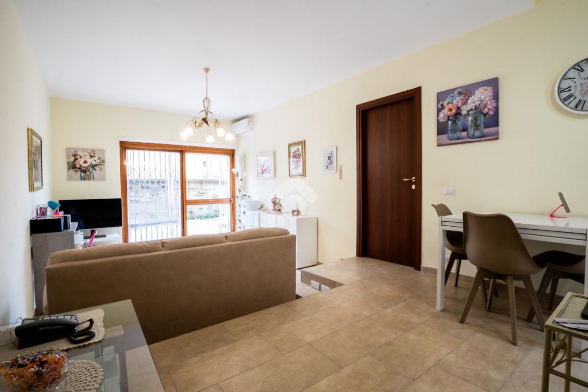 L’immobile è composto da: corte esterna di entrata, ampio e luminoso soggiorno, con accesso diretto a un terrazzo e a un giardino pavimentato, perfetti per momenti di relax all’aperto, cucina abitabile, disimpegno, spaziosa camera matrimoniale, bagno finestrato con doccia.