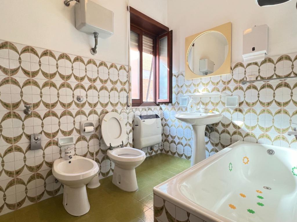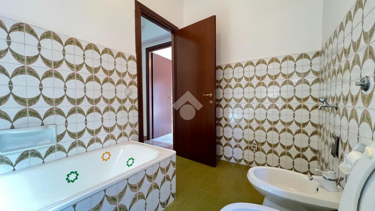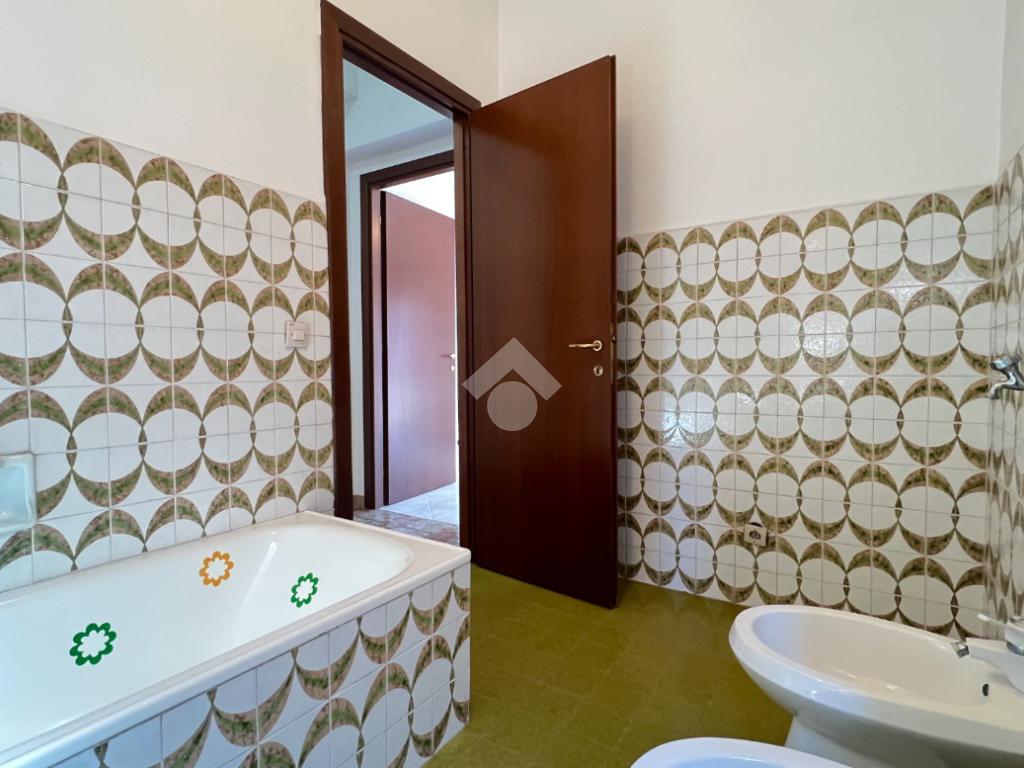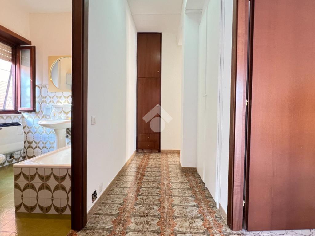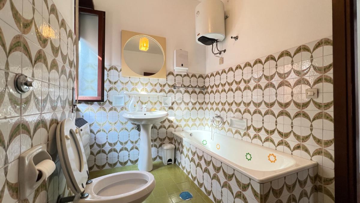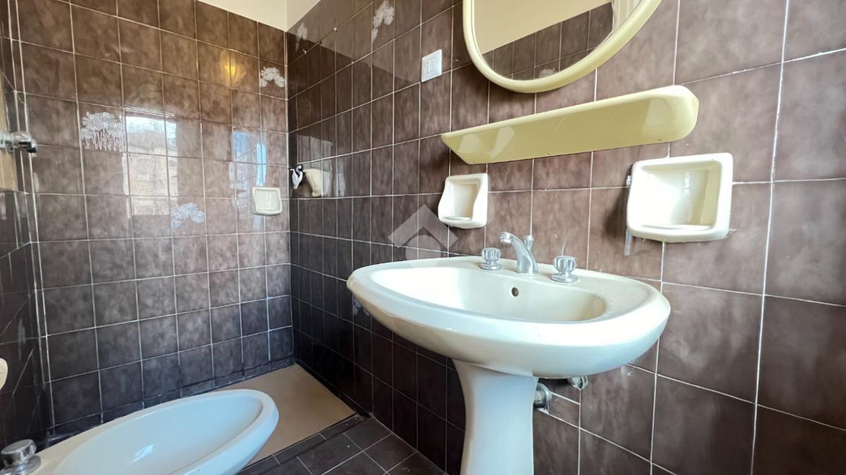 -Ingresso, cucina abitabile con tinello, soggiorno con canna fumaria e predisposto per l’installazione di un camino, disimpegno con armadi a muro, camera matrimoniale con bagno finestrato e doccia, una camera, una cameretta, un secondo bagno finestrato con vasca e tre balconi.