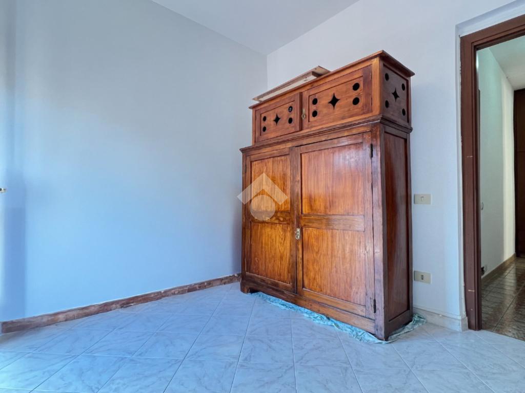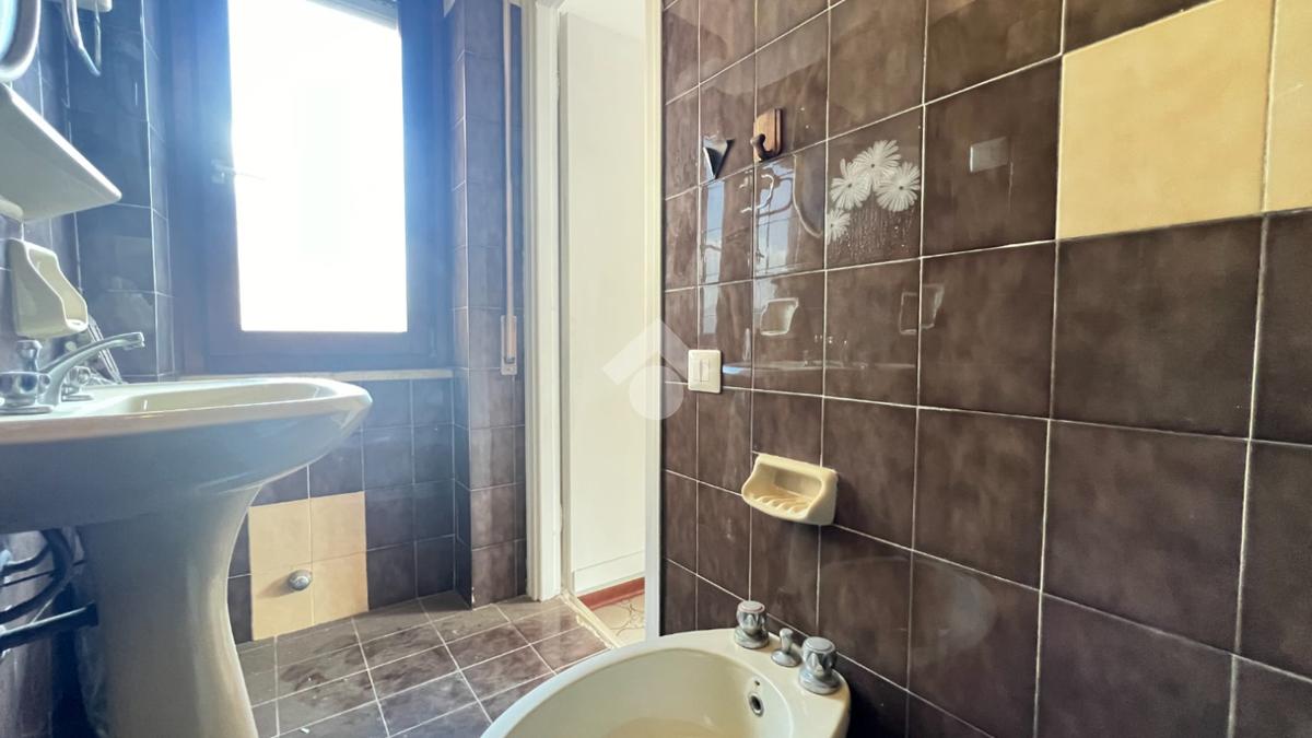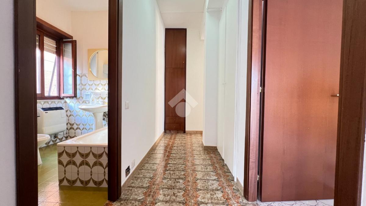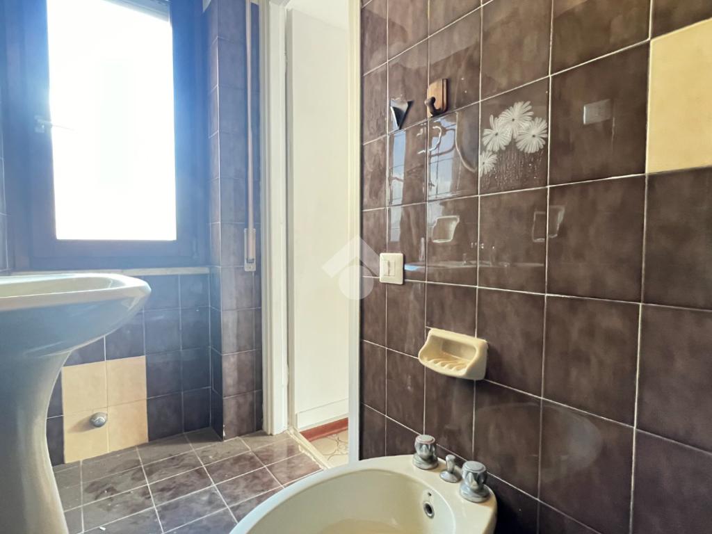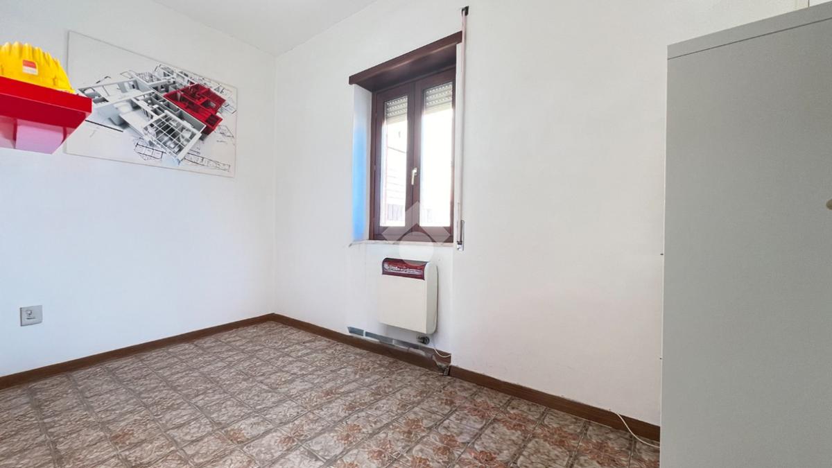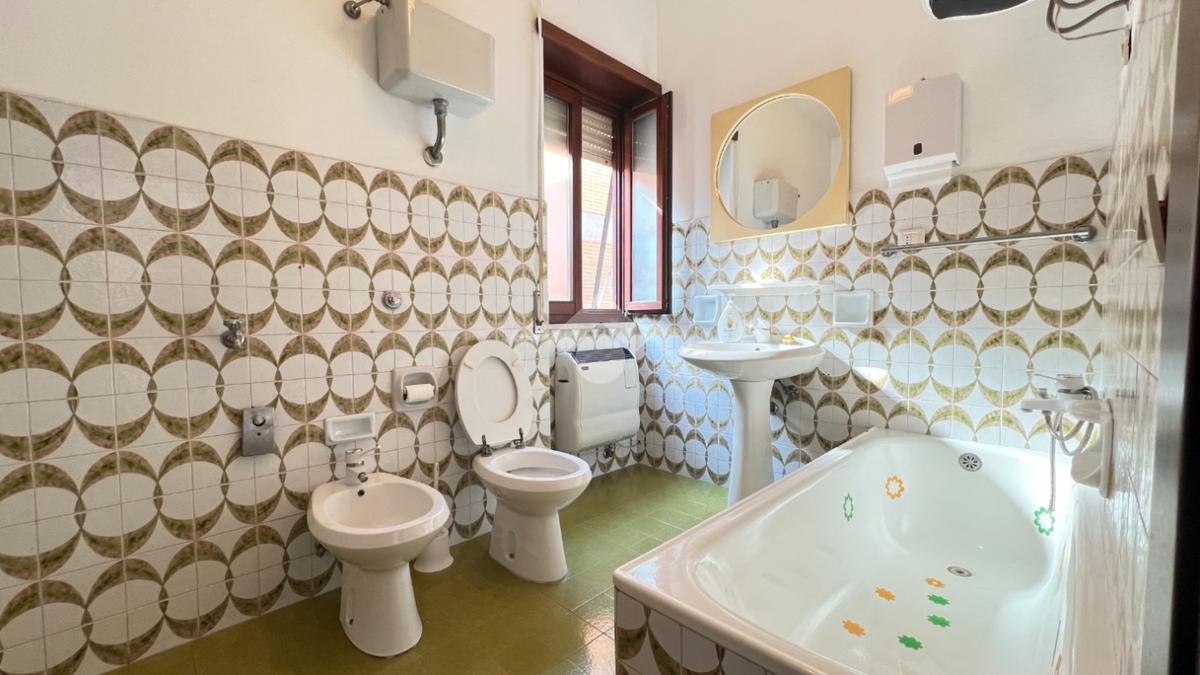 -Ingresso, cucina abitabile con tinello, soggiorno con canna fumaria e predisposto per l’installazione di un camino, disimpegno con armadi a muro, camera matrimoniale con bagno finestrato e doccia, una camera, una cameretta, un secondo bagno finestrato con vasca e tre balconi.
