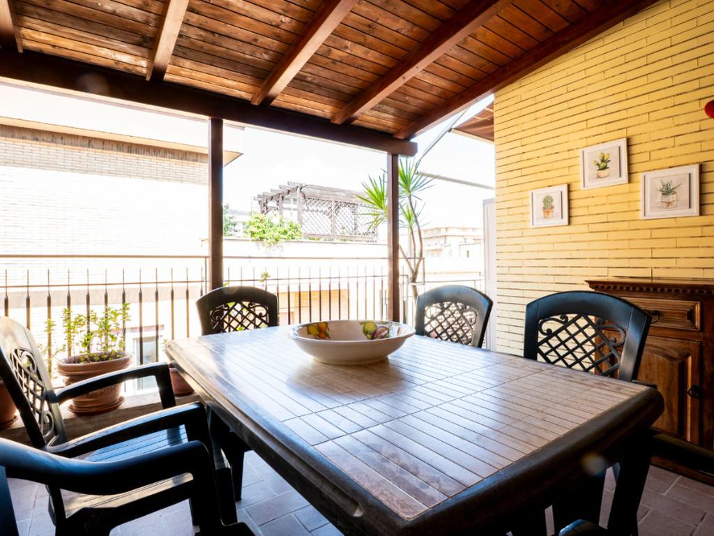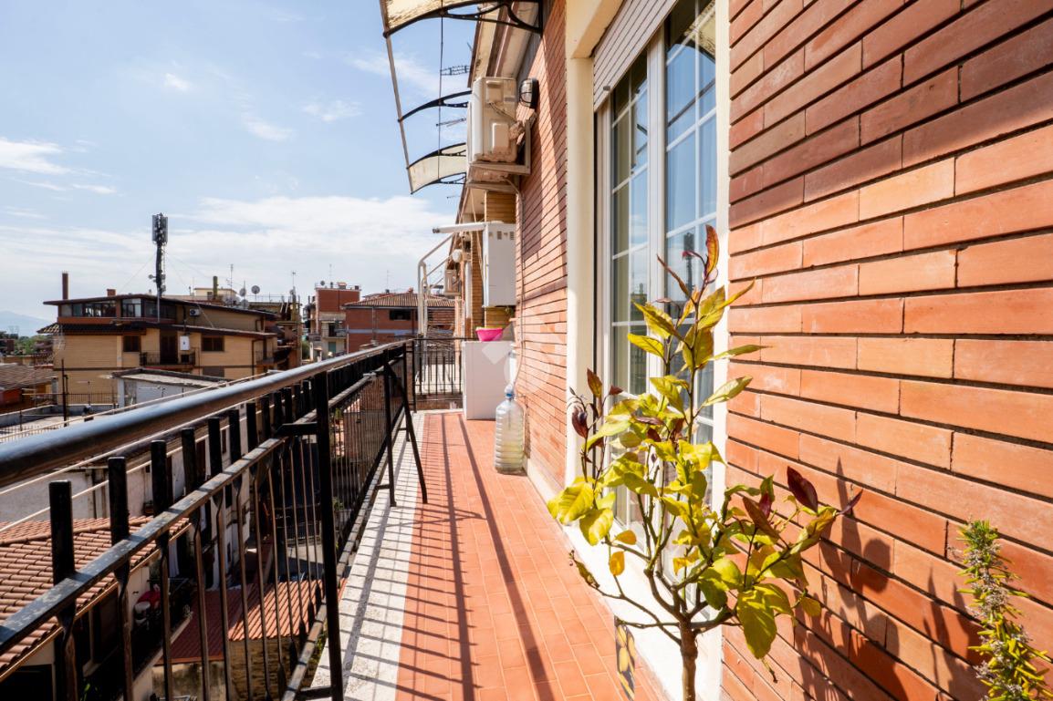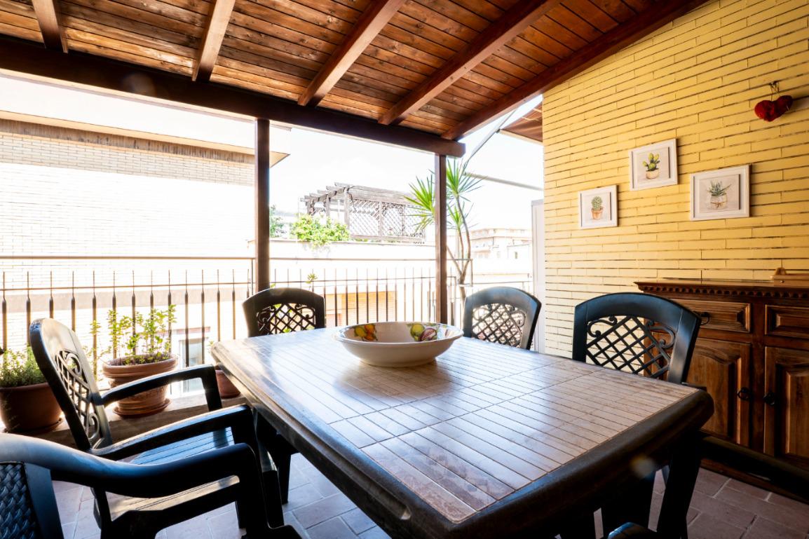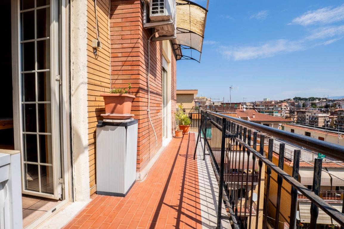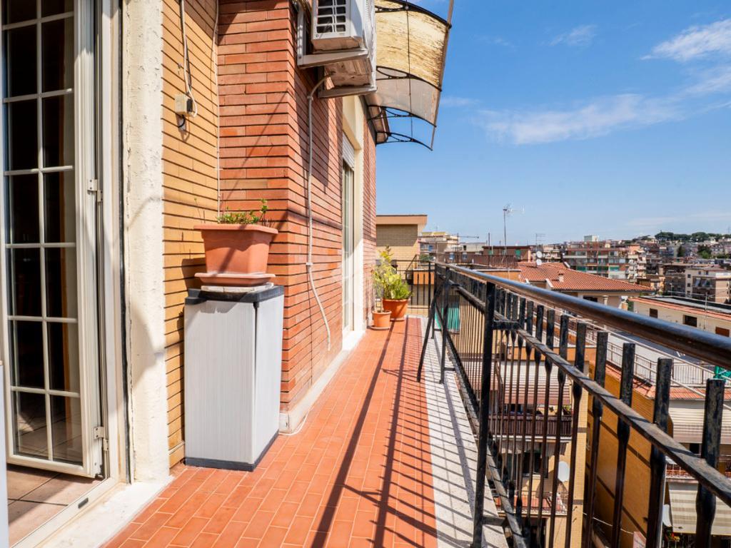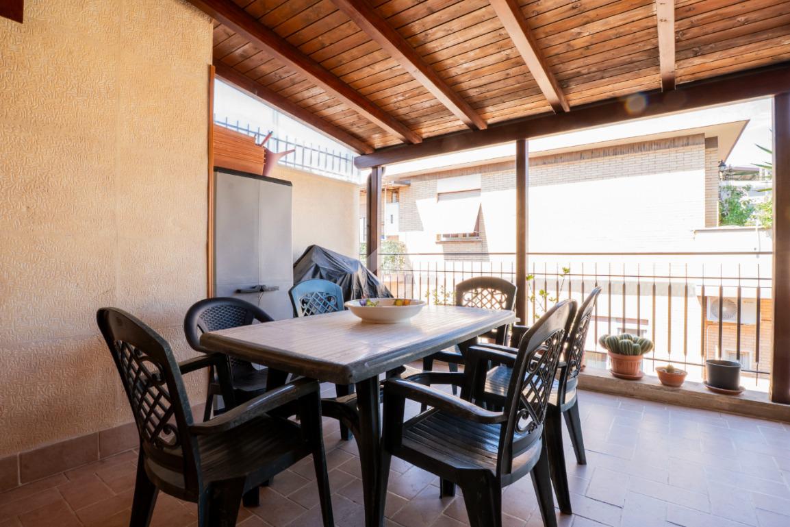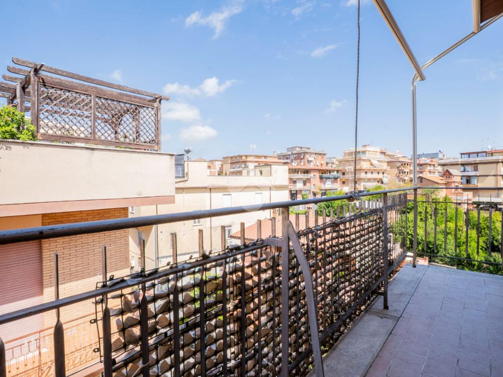 Gli spazi esterni rappresentano il vero valore aggiunto: due balconi e un ampio terrazzo con elegante copertura in legno, ideale per pranzi all’aperto o momenti di relax, il tutto accompagnato da una piacevole vista panoramica che regala luce e respiro agli ambienti.