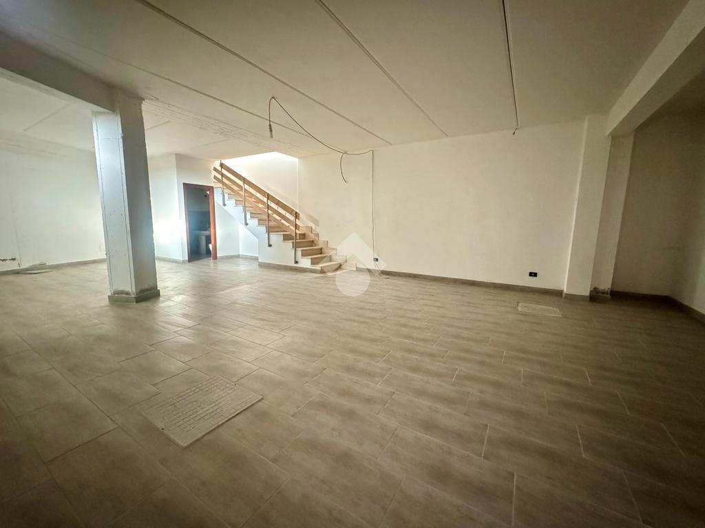 Al piano di entrata si sviluppa un ampio open space luminoso, perfetto per area vendita o accoglienza clienti, mentre al piano inferiore (collegato da una scale interna) si trova un ulteriore ambiente multifunzionale, utilizzabile come magazzino, ufficio o area operativa.