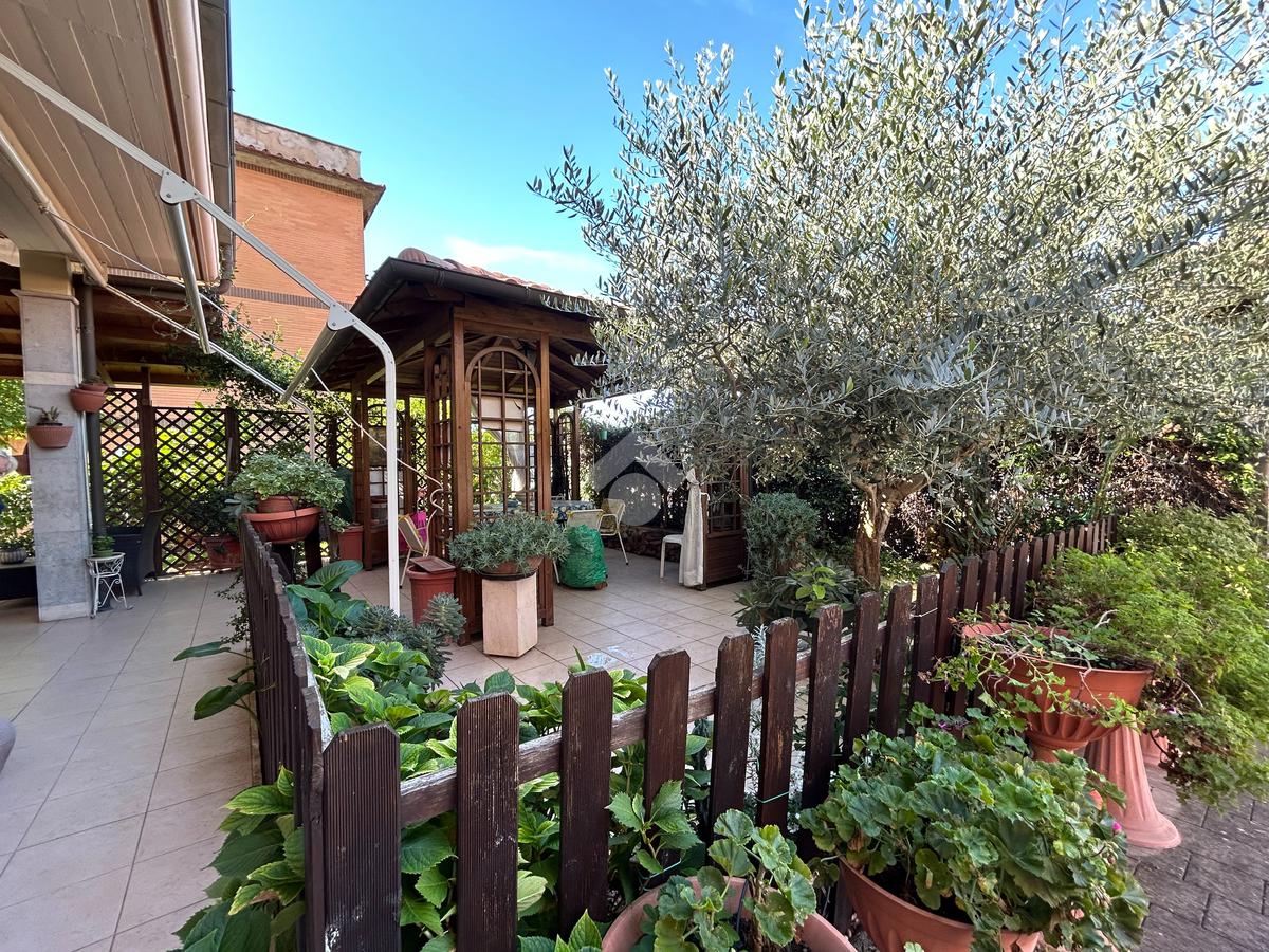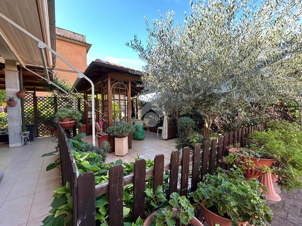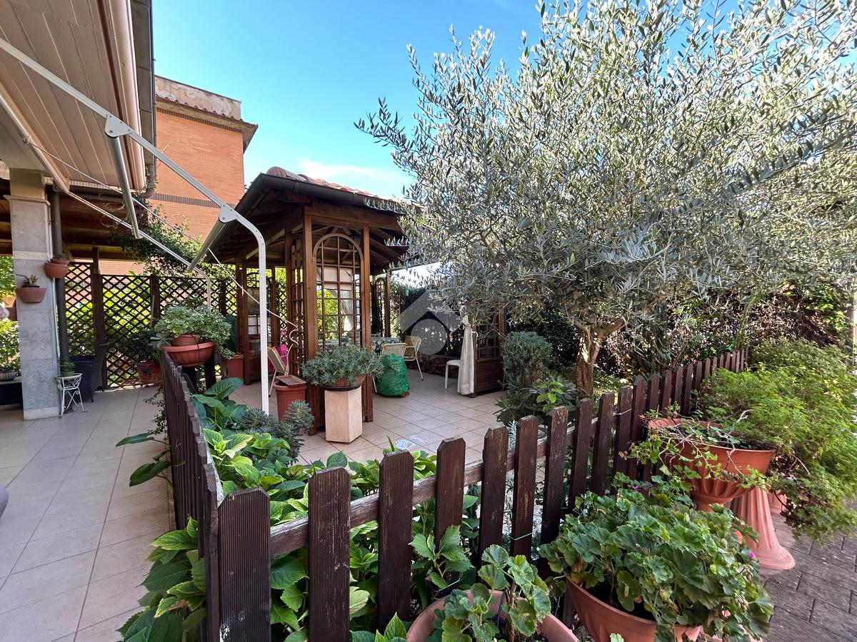 La soluzione, curata nei minimi dettagli, è dotata di un giardino privato di 100 mq circa, in parte pavimentato, un gazebo in legno e un posto auto di pertinenza a cui si accede tramite cancello automatico; ad impreziosire questa splendida villa troviamo:
