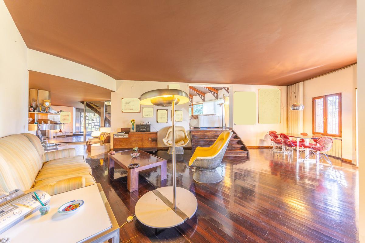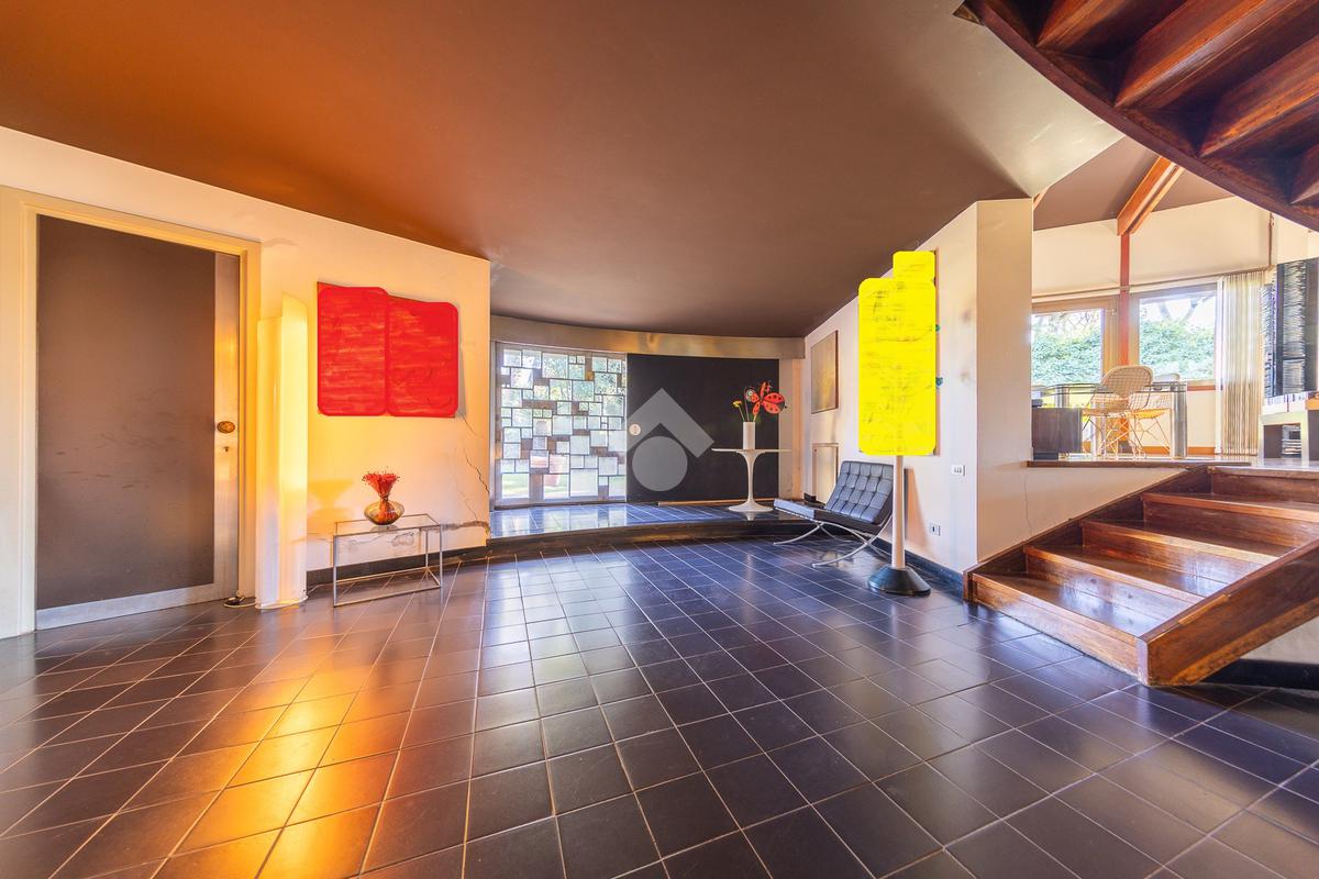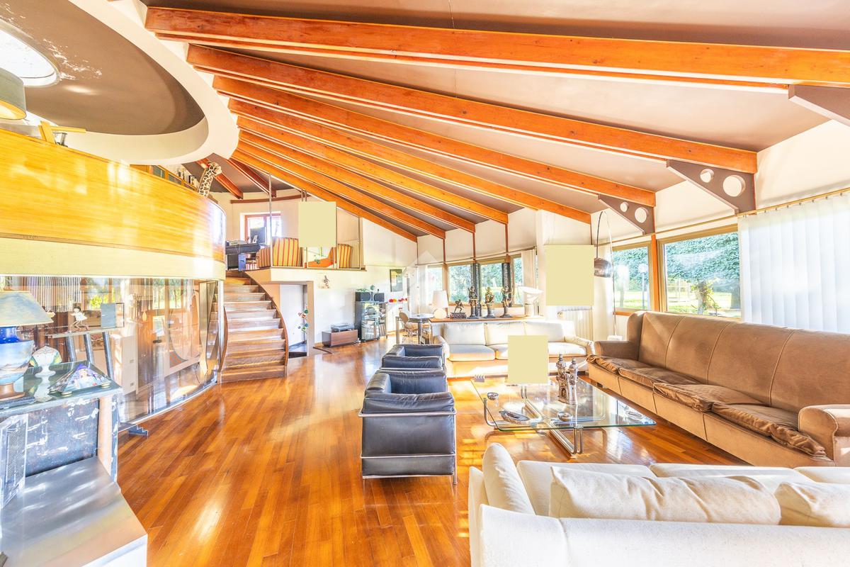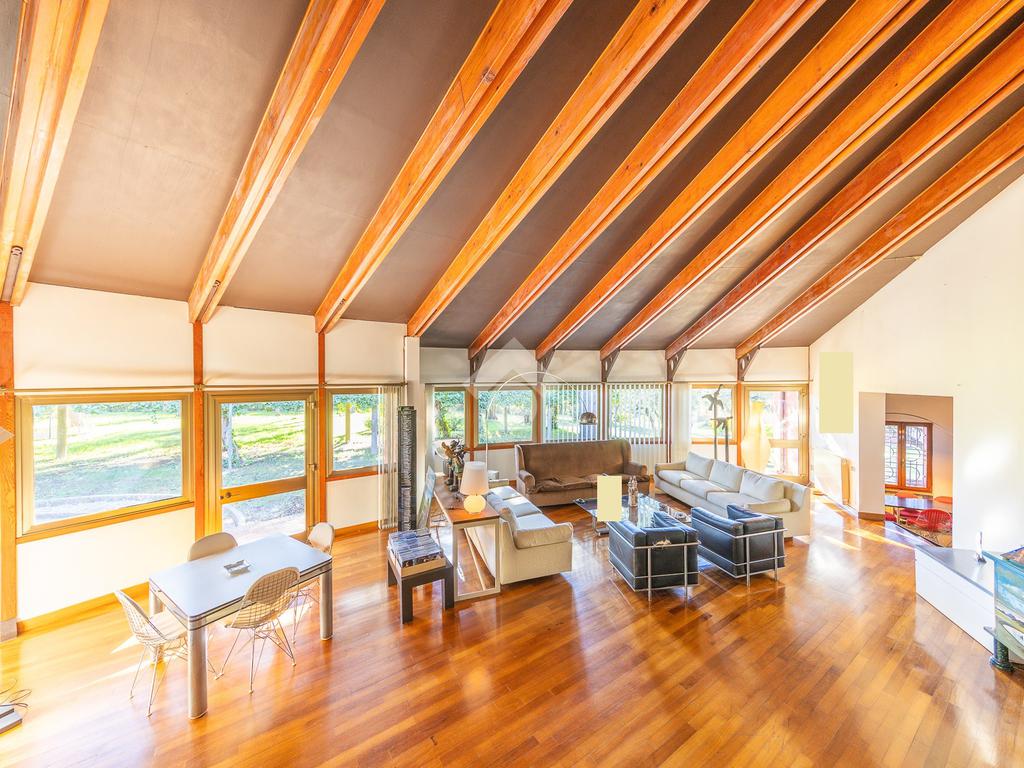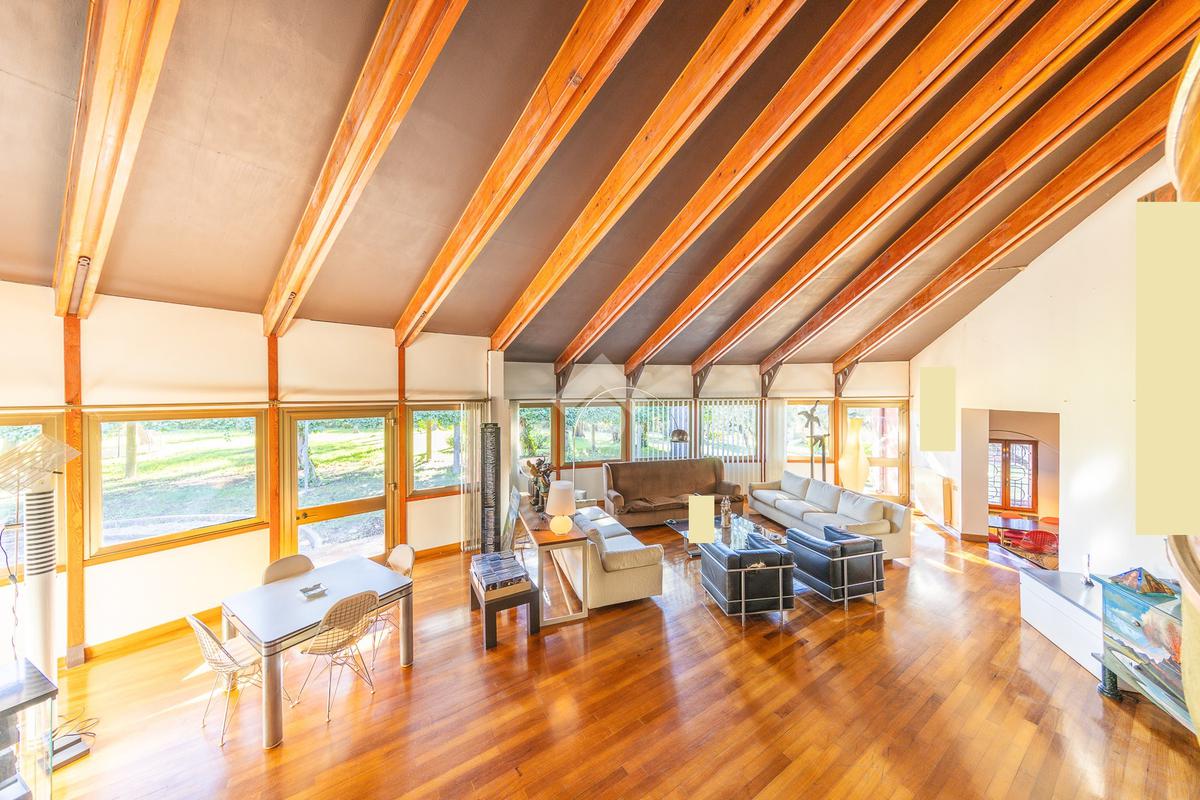 - ampi saloni caratterizzati da alti soffitti, finiture di pregio e grandi vetrate panoramiche che si affacciano sul parco;